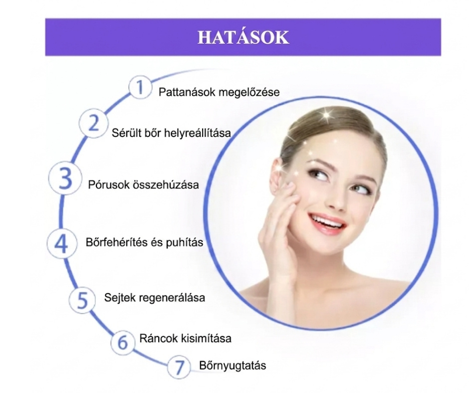 | Funkciók | Bőrfiatalítás, akné kezelés, heghalványítás, pórusösszehúzás |
